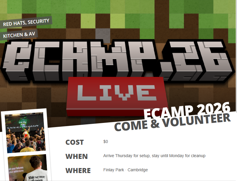 eCamp is an amazing time and it is run with some amazing volunteers. Whether they are part of Security, the Kitchen team, the Admin Team, The Band, Audio Visual or the well known Red Hats and many more, eCamp connot go ahead with the work and support of all of them. If you are on one of these teams you will need to register that you are coming to eCamp 2026.